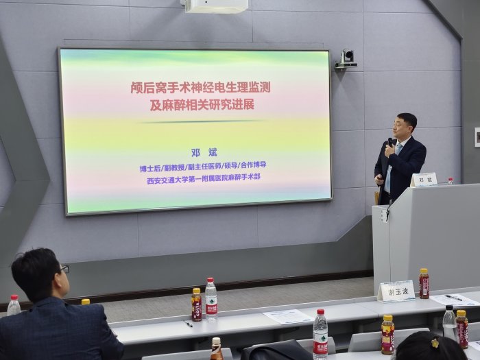 随后,陕西省西安交通大学第一附属医院麻醉手术部副主任邓斌副教授围绕颅后窝手术神经电生理监测及麻醉新进展,展开了精彩阐述,为围术期脑保护提供了有力的新论据和切实可行的新方案,其分享的前沿技术和研究成果引发了与会者的广泛关注与深入思考。