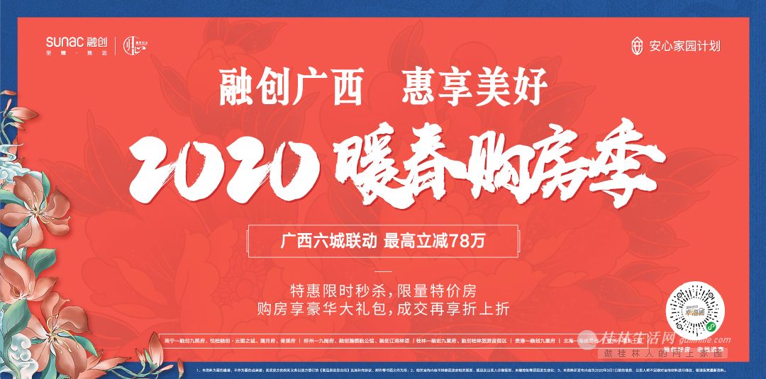 3月5日融创西南与京东联手,全新上线融创西南京东旗舰店,同日拉开暖春购房季序幕,推出限量秒杀特价房源,广西6城11盘推出近百套秒杀房源,最高优惠75万,其中桂林融创九棠府将推出8套秒杀特价房,最高优惠12.5万,同时限量推出8.8元买23888元京东购房补贴券,给购房者五重购房优惠: